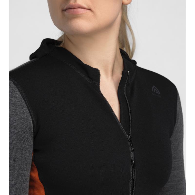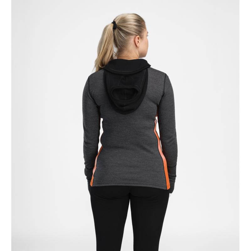 WarmWool Hoodsweater w/Zip er en teknisk ulltrøye perfekt som baselayer på kalde dager. Den kombinerer ekstrem varme, pusteevne og smarte funksjoner, noe som gjør den ideell for ski, jakt, friluftsliv og ekspedisjoner. Med en tykkelse på 220 g/m² gir denne ulltrøya optimal isolasjon, fukttransport og temperaturregulering, slik at du holder deg varm og tørr selv under krevende værforhold. Treveis hettefunksjonen gir deg full fleksibilitet – velg mellom rund hals, høy hals (polo) eller full dekning med integrert balaklava. I front av balaklavaen er WoolNet-netting integrert for å forhindre isdannelse ved pusting, noe som sikrer komfort selv i ekstreme temperaturer. Glidelåsen på brystet kan åpnes begge veier som gjør det enkelt å slippe ut overskuddsvarme under aktivitet, mens ribbestrikkede paneler i sidene gir økt bevegelsesfrihet og komfort. Genseren har en varmelomme med glidelås på magen for å holde hendene varme, samt tommelhull ved håndleddene for ekstra beskyttelse. I tillegg har denne hoodsweateren en praktisk klokkeåpning på venstre arm, slik at du enkelt kan sjekke smartklokken uten å måtte trekke opp ermet – perfekt for aktive brukere i krevende omgivelser. WarmWool-serien er vår mest populære kolleksjon spesielt utviklet for kalde forhold. Med gode pusteevner som sikrer komfort under høy aktivitet er WarmWool det perfekte valget for deg som ønsker en slitesterke, isolerende og temperaturregulerende ullplagg til friluftsliv, ski og hverdagsbruk.