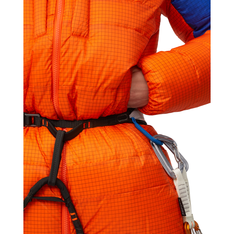 Ekstremt varm dunparkas utviklet for krevende alpine forhold hvor maksimal isolasjon er avgjørende. Parkasen er designet for bruk under klatring, ekspedisjoner, bivuakk og andre aktiviteter i høyfjellet hvor man trenger pålitelig varme under pauser eller ved sikring. Den lange parkasfasongen gir ekstra beskyttelse og varme i kaldt og utsatt terreng.