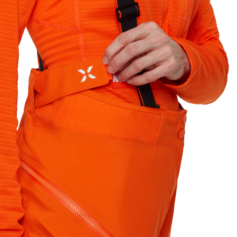 Den robuste trelags konstruksjonen gir svært god beskyttelse samtidig som materialet er pustende nok til bruk under høy aktivitet. Den ergonomiske passformen er tilpasset teknisk klatring og gir god bevegelsesfrihet i bratt terreng. Ventilasjonsglidelåser langs bena gjør det enkelt å regulere temperaturen under krevende oppstigninger.