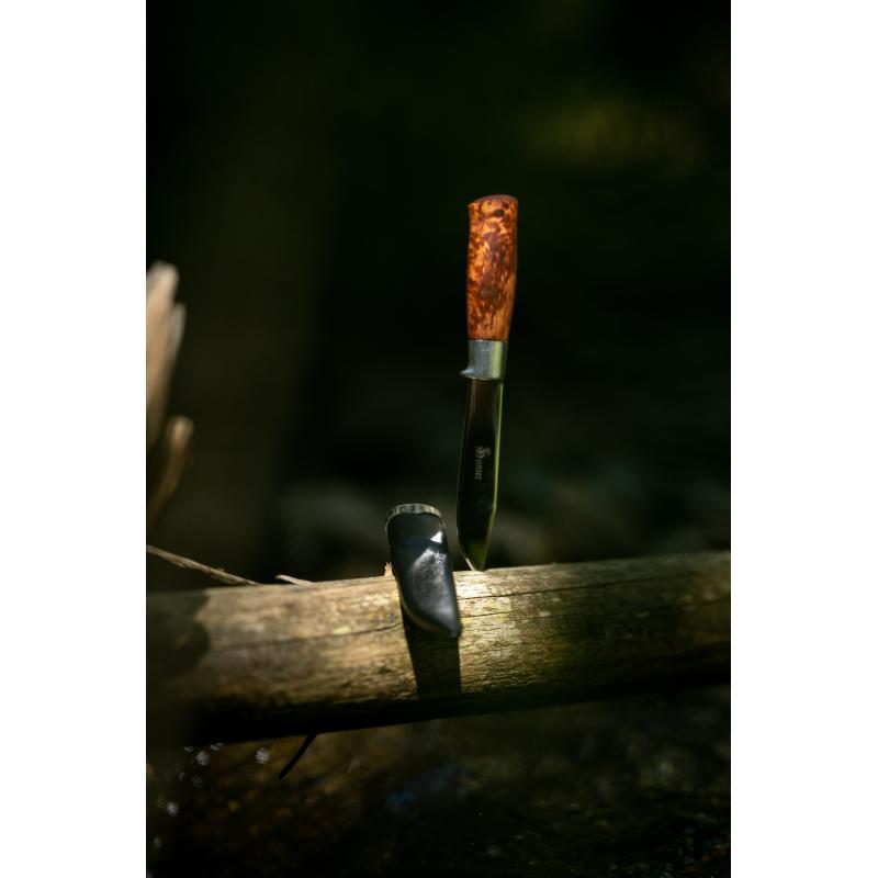 14116N stål i knivbladet. konslipt og holdbart. Ren kvalitet. Knivlengde: 25.5 cm Bladlengde: 13.2 cm Knivblad: 141116N Matrial Skaft: Beiset og oljet Masurbjørk Vekt: 94 gram