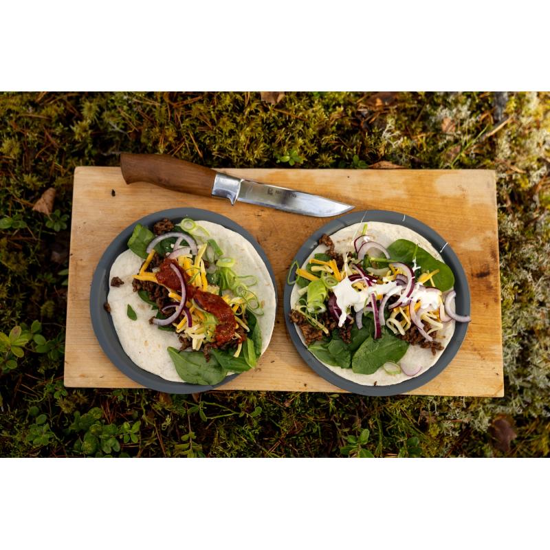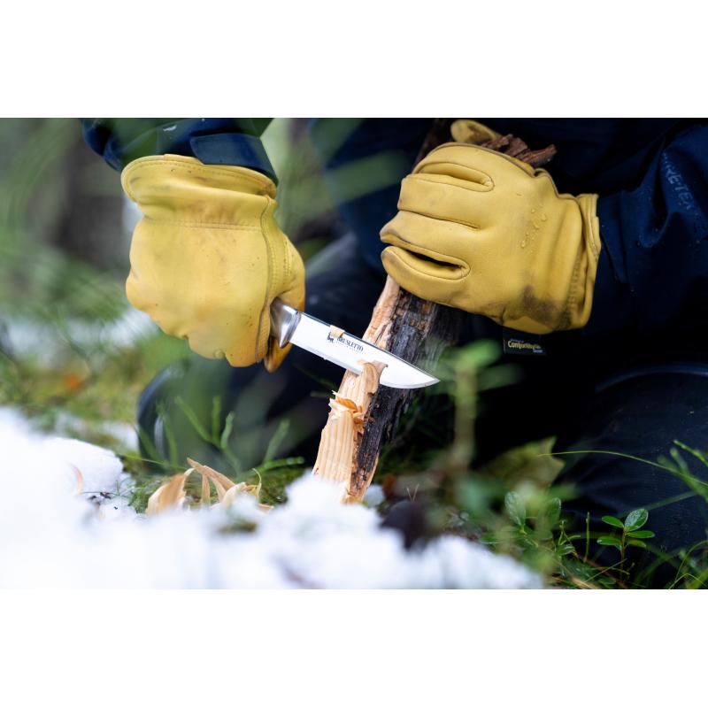 Dette er en mellomstor allroundkniv for jegere og friluftfolk. Kniven. ble kåret til Best i Test i Frluftsmagasinet Ute 3/2008. Knivbladet er smalt konslipt med en lengde på 11.5 cm. Støpt aluminiumsholk med fingerbeskytter. Kniven er suveren til å skjøre brød. pølser. spikke pølsepinner eller andre oppgaver du ønsker å bruke kniven til. Knivbladet er stålkvalitet 14116N som er holdbart og lett å slipe opp igjen. Skaft i amerikansk rotnøtt. Kniven blir levert med en slire og en flott gave eske.Bladmateriale: 14116N stål. Skaftmateriale: Oljet maerikansk rotnøtt. Bladlengde: 11.52 cm. Totallengde: 24.6 cm. Slire: sort okselær med trykk knapplåsing. Vekt 200 gram. Garanti: livstidsgaranti mot fabrikasjonsfeilSolid og varig. Blad i rustfritt stål. Meget godt grep. Slire følger med. Lett å slipe opp igjen