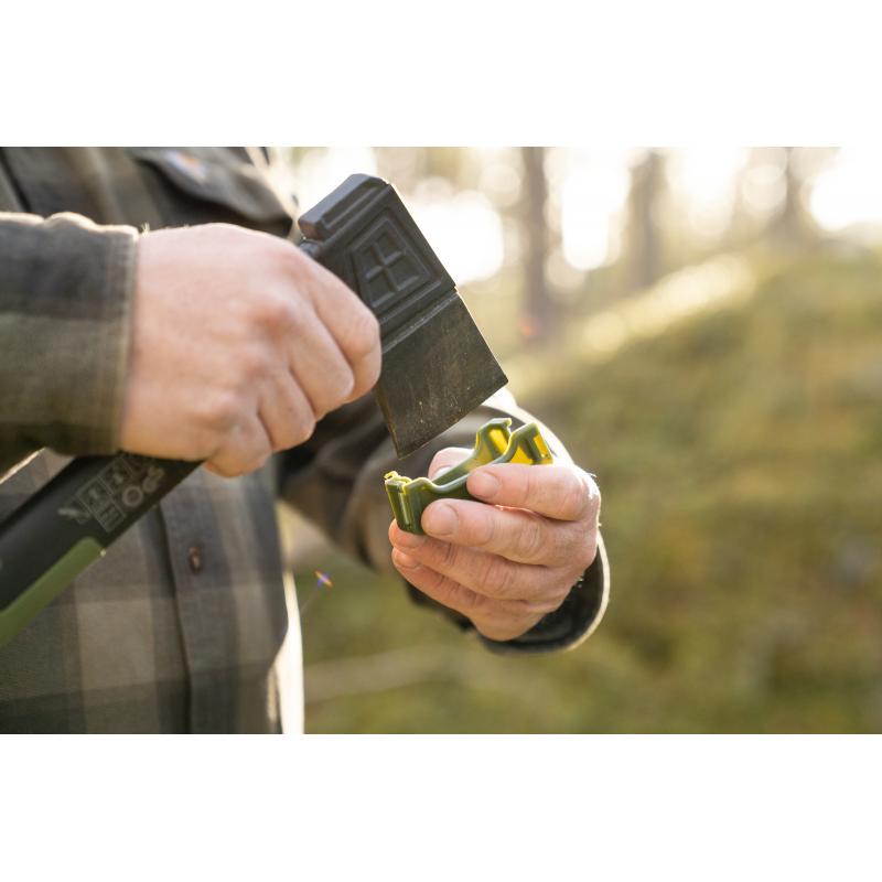En liten turøks som er perfekt til å lage opptenningsved og for å dele opp småkubber. Skaftet er av glassfiber og har sklibelegg bakerst på skaftet. Sitter godt i hendene, også om den blir våt. Skaftet er støpt rundt økshode i karbonstål. Dette gjør at øksen tåler mye. Øksen er kompakt og lett å ha i med seg i sekken. Beskyttelsesklips på eggen.