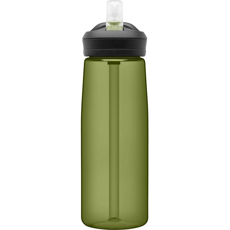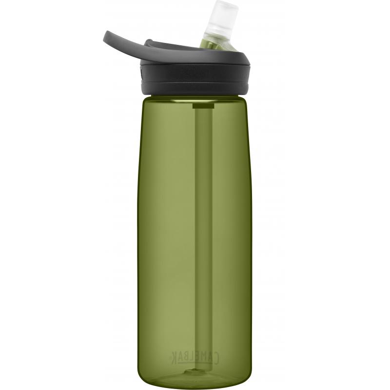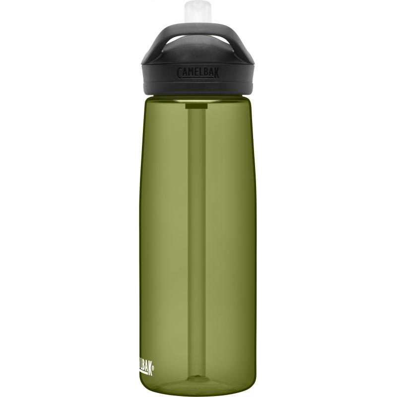 Eddy+ fra Camelbak, er en sølesikker drikkeflaske som passer like godt til trening som til arbeid. Flasken er enkel å drikke av; du vipper opp drikketuten, biter og drikker. Den kan enkelt fylles ved hjelp av den store åpningen. Flasken kan vaskes i oppvaskmaskin.Den slanke formen på flasken gjør at den ligger godt i hånden, samtidig som den passer godt i de fleste koppholdere. Den har et integrert håndtak som gjør det enkelt å feste på en karabinkrok eller bære med én finger. Flasken setter verken smak eller lukt på innholdet.