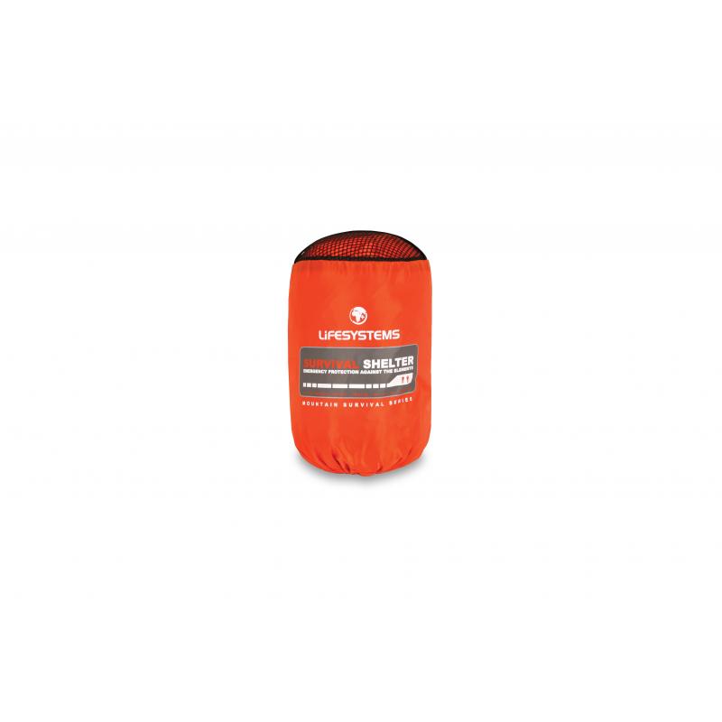 Survival Shelter er en vindsekk med plass til 2 personer. Det er et sikkerhetsprodukt anbefalt til all bruk i fjellet. Pakkes enkelt opp og trekkes over deg selv og turfølget. Survival Shelter er helt vann- og vindtett og er farget i synlig oransjefarge. Kan også brukes i pauser for å søke ly fra vind.