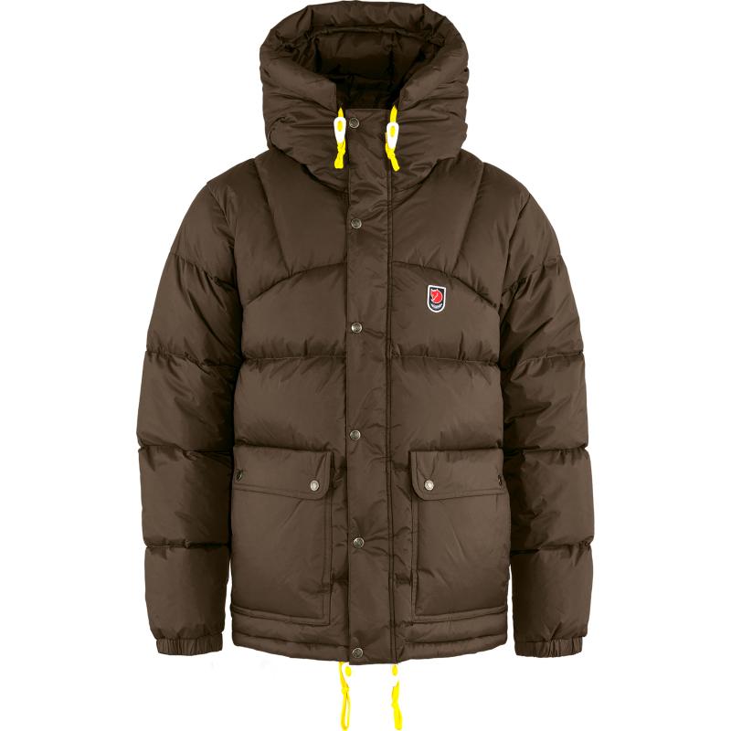 Lett variant av den klassiske Expedition Down Jacket fra 1974, her med gjennomsydd konstruksjon og 35 % mindre dun til mildere vinterklima. Modellen er også 8 cm kortere. Utover det, er den helt lik originalen: romslig hette, gul snørejustering og romslige lommer. Skuldrene er forsterket med syntetisk polstring for å motstå fuktighet og trykk.