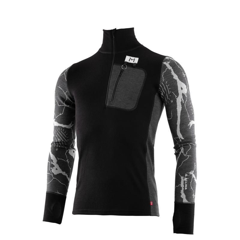 Trøyen har Aclimas eget Femunden-mønster og er har rib-strikkede og Jacquard-strikkede partier. Den har tommelhull på ermene, lomme på brystet og strategisk plasserte metallringer på brystet hvor man kan henge kompass eller annet utstyr. Den har også hempe bak i nakken og på ermene som gjør det enkelt å henge den til tørk.