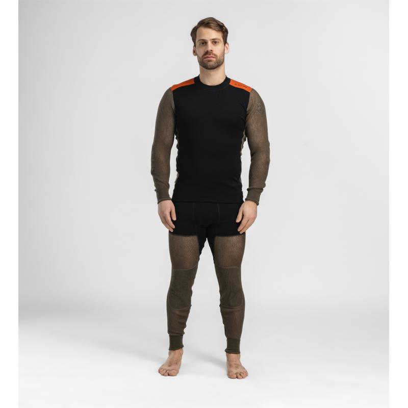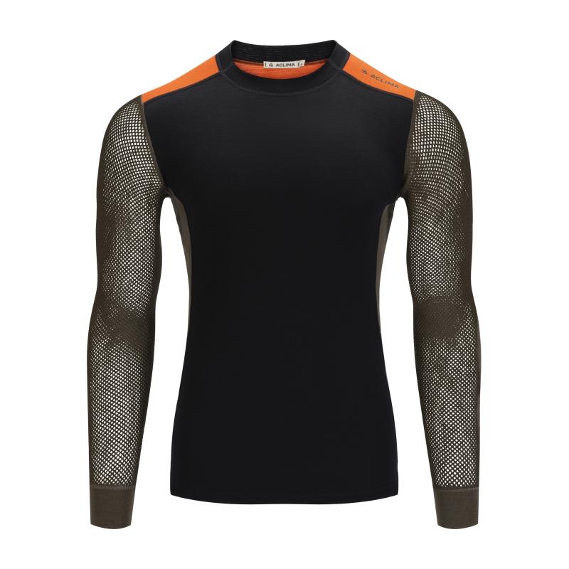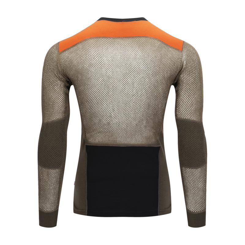 WoolNet Hybrid Crewneck er ullnetting trøye med rund hals og lange armer. Ekstra beskyttelse på albuer for økt slitasjestyrke samt ribbestrikket stoff over skuldre for god beskyttelse mot bæreremmene på sekken. Trøyen har Warmwool stoff i front strikket i 100% merino ull, og WoolNet ullnetting på armer og rygg.