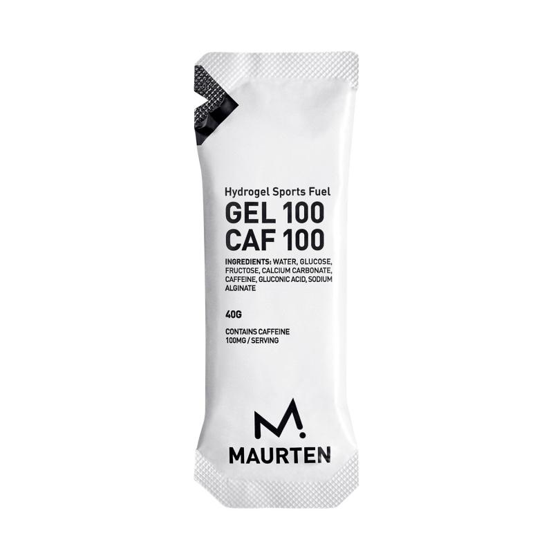 GEL 100 CAF 100 inneholder 100 mg koffein – tilsvarende 1,5 espressoer eller en kopp brygget kaffe. Det er mye sammenlignet med mange tradisjonelle geler. Den gir 25 gram karbohydrater gjennom en unik blanding av fruktose og glukose (forhold 0,8:1). Den har et høyt vekt-til-energi-forhold og inneholder ingen tilsatte smaker, konserveringsmidler eller fargestoffer. Som alle våre produkter er den vegansk. Bruk GEL 100 CAF 100 alene under kortere økter, eller kombiner den med andre Maurten-produkter for å sikre at du får nok karbohydrater gjennom hele økten.